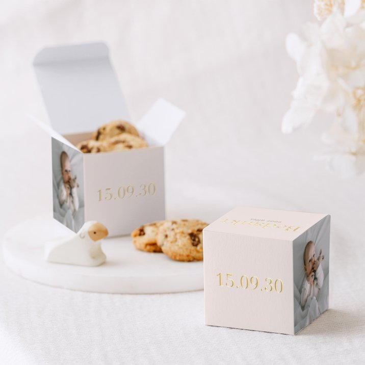 Een verrassingsdoosje als cadeautje voor je familie en vrienden, een mooie herinnering aan de geboorte van jullie kleine. Een kleine kubus van 5,4 x 5,4 cm waarin verschillende soorten lekkernijen kunnen. Laat je creativiteit de vrije loop!