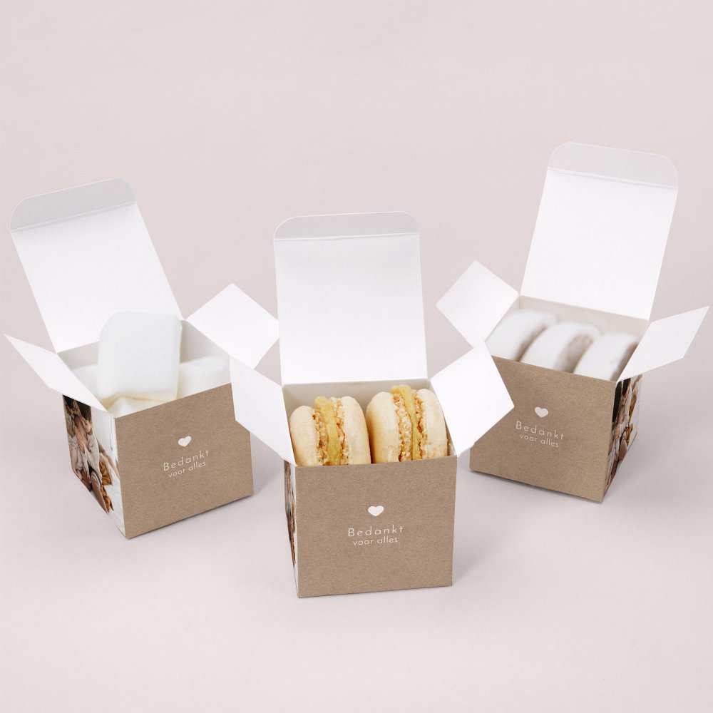 In dit kleine doosje passen ook kleine niet eetbare cadeautjes als sieraden, een klein kaarsje of zaadjes om te planten...