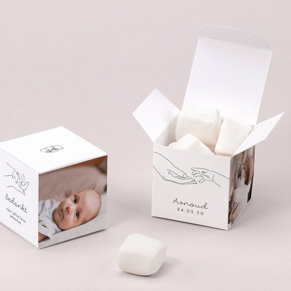 Suikerbonen van Cotton Bird geef je het leukste in een geheel gepersonaliseerd geschenkdoosje. En zo'n mooi doosje blijft natuurlijk bewaard tot ver na de geboorte. Kies voor een doosje dat qua kleur en stijl bij jullie persoonlijkheid past. Nog leuker is het om er een foto en de naam van de baby op te laten drukken. Persoonlijker dan dit bestaat niet!