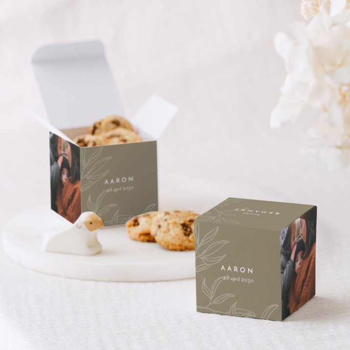 Een verrassingsdoosje als cadeautje voor je familie en vrienden, een mooie herinnering aan de geboorte van jullie kleine. Een kleine kubus van 5,4 x 5,4 cm waarin verschillende soorten lekkernijen kunnen. Laat je creativiteit de vrije loop!