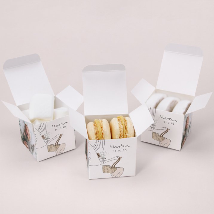 Een verrassingsdoosje als cadeautje voor je familie en vrienden, een mooie herinnering aan de geboorte van jullie kleine. Een kleine kubus van 5,4 x 5,4 cm waarin verschillende soorten lekkernijen kunnen. Laat je creativiteit de vrije loop!