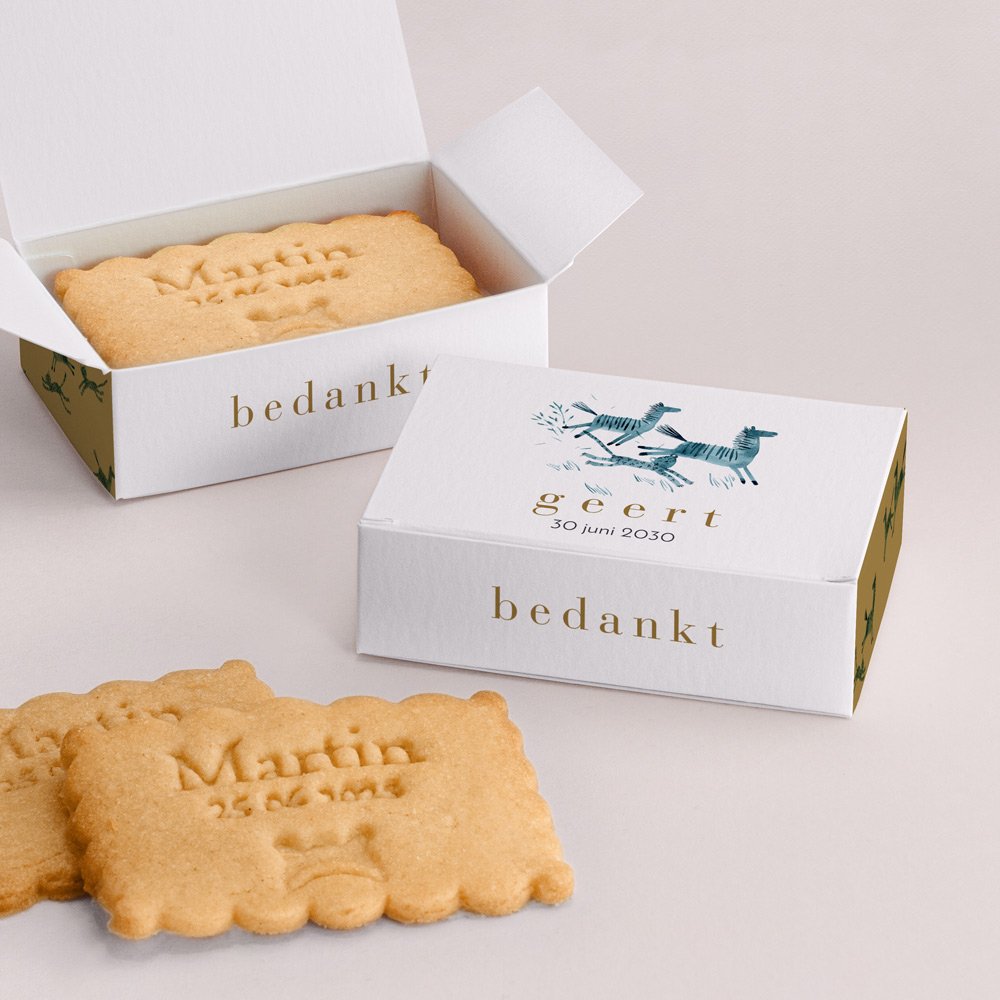 De koekjesdoos is speciaal ontworpen en gemaakt om jullie kraamvisite te verrassen met een smakelijk cadeautje! Personaliseer het doosje met een lief berichtje, foto of naam van de baby.In 1 doosje kunnen 3 of 4 koekjes, afhangend van de dikte van het koekje.