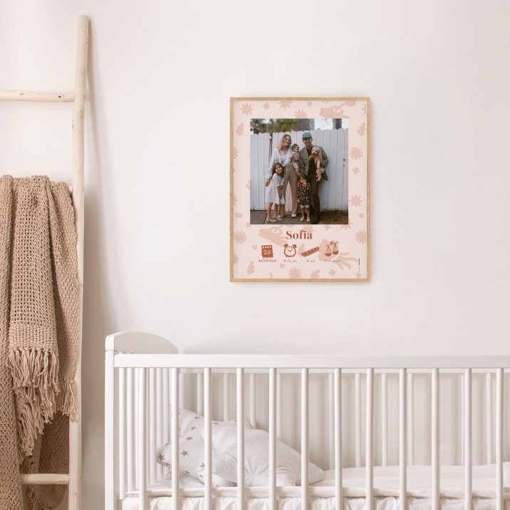 De komst van een baby aankondigen is een magisch moment dat we graag vastleggen. Laat deze mooie herinnering op de mooiste manier in de babykamer terug komen.