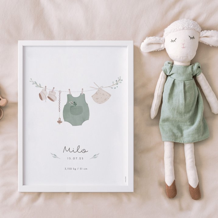 Plaats deze mooie herinnering in de slaapkamer van je pasgeboren baby.