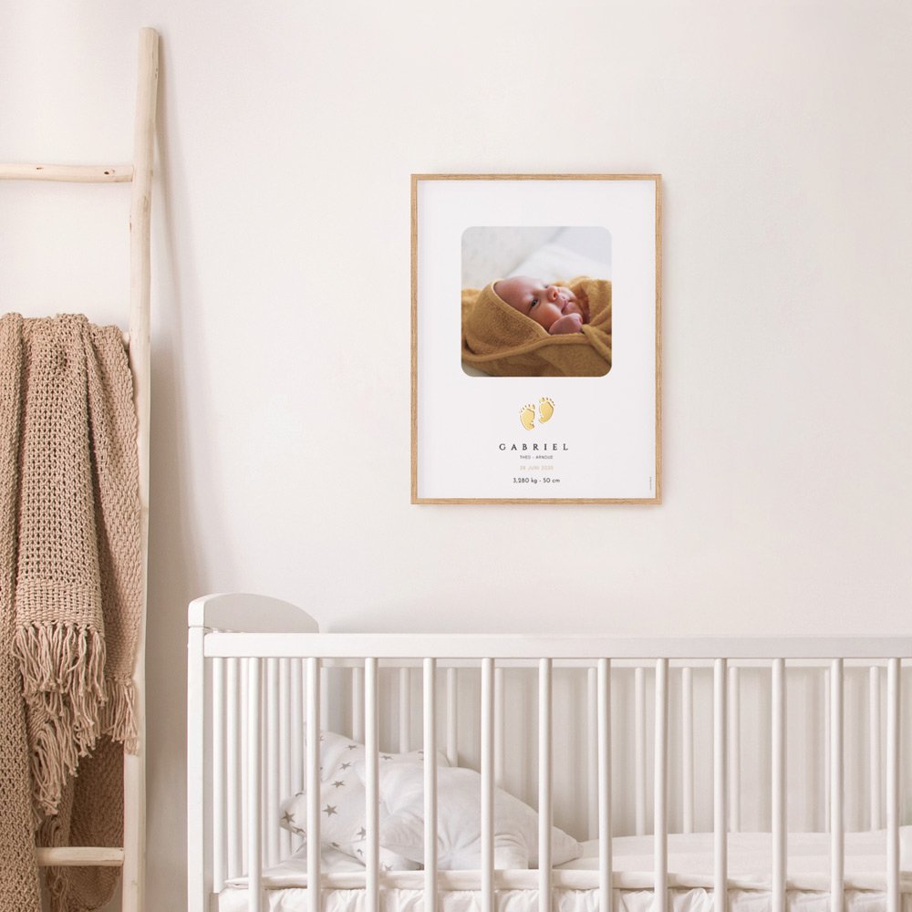 De Golden Little Feet-poster combineert de mooiste foto van je kleintje met schattige voetjes in een fijne gouden afwerking. Het ontwerp past perfect in de kinderkamer!