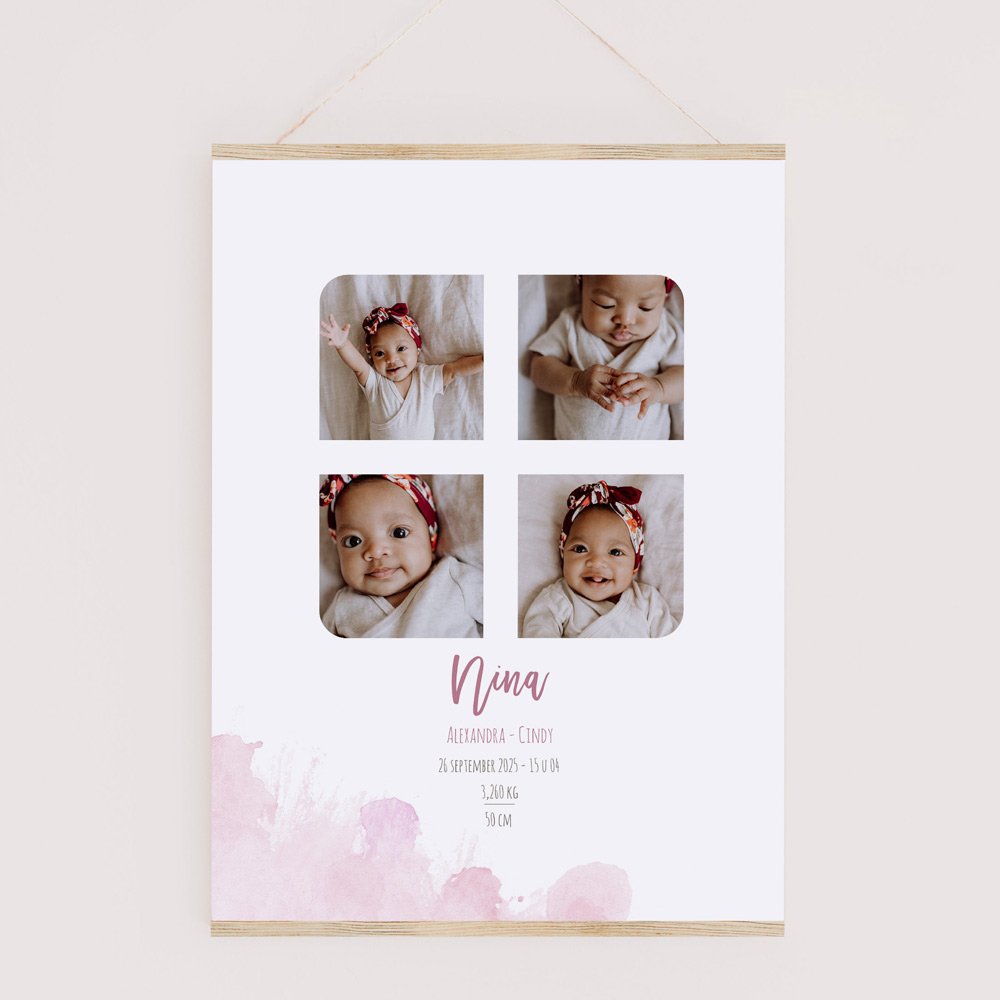 Personaliseer de poster met de voornaam, lengte, gewicht, evenals het tijdstip en de dag van de geboorte van je kleine uk.
