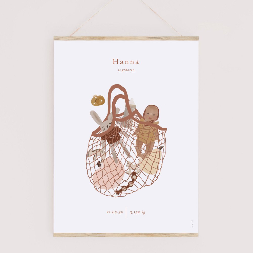 Jij bent helemaal vrij in de keuze van wat er op de geboorteposter komt te staan. Onze ontwerpers hebben verschillende designs gemaakt waar je uit kunt kiezen. Natuurlijk staat de naam van jouw baby er op, net als de geboortedatum. Daarnaast worden vaak de algemene geboortegegevens, zoals het geboortegewicht, de lengte van je baby en het tijdstip van de geboorte, ook regelmatig op de poster gezet. Wil jij bijvoorbeeld ook de geboortedag, geboorteplaats en jullie eigen namen op de poster vermelden als leuke herinnering? Dan is dit soms mogelijk.
