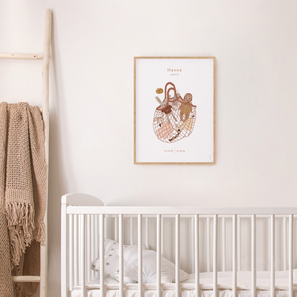 Heb jij geboortekaartjes besteld bij Cotton Bird en ben je helemaal weg van het ontwerp? Laat dan een mooie poster maken in dezelfde stijl als de geboortekaartjes! Je bewerkt eenvoudig zelf de geboorteposter in hetzelfde ontwerp als je geboortekaartje met de naam van je baby, het gewicht, de lengte en de tijd en dag van zijn of haar geboorte. Bestel direct een lijstje mee zodat je alleen nog maar een spijker in de muur hoeft te slaan om de poster op te hangen. Ook is het erg leuk om de poster op te hangen met magnetische houten stokjes. De geboorteposters zijn verkrijgbaar in twee formaten: een klein formaat van 18 x 24 cm en een groot formaat van 30 x 40 cm.