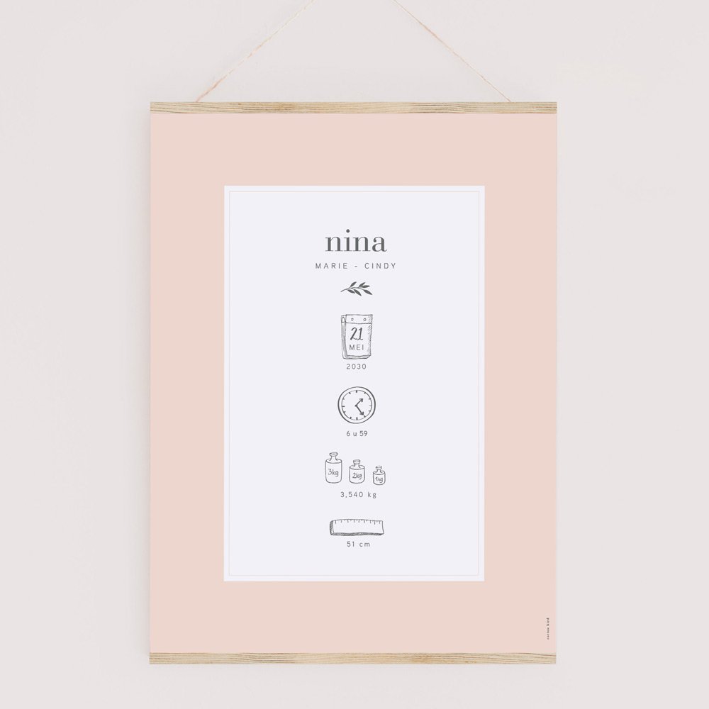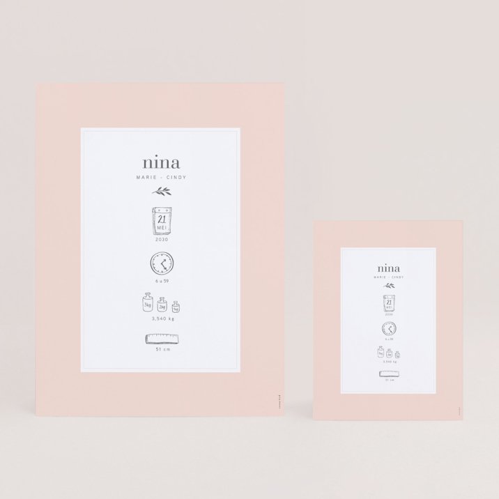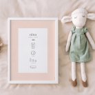 Personaliseer de poster met de voornaam, lengte, gewicht, evenals het tijdstip en de dag van de geboorte van je kleine uk.