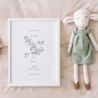 Personaliseer de poster met de voornaam, lengte, gewicht, evenals het tijdstip en de dag van de geboorte van je kleine uk.