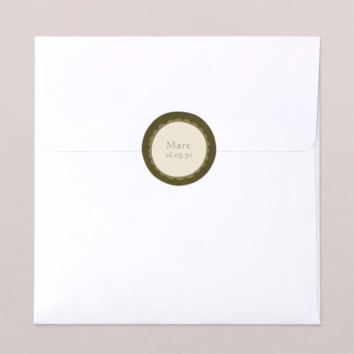 Klein stickertje om je enveloppen te versieren. Een mooi cadeau voor je familie en vrienden, vooral met een leuke verrassing als een snoepdoosje met doopsuiker?