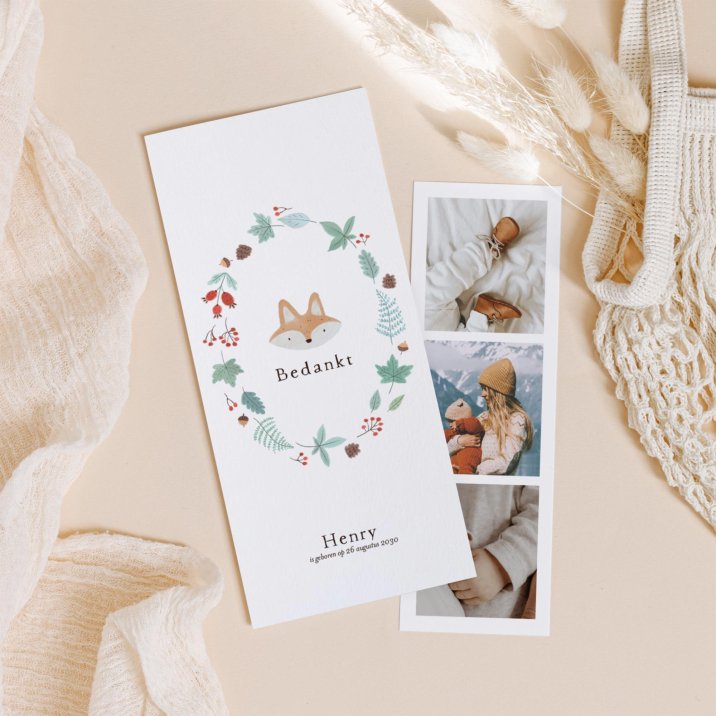 De fotostrip gaat in de binnenkant van de kaart en kan worden opgehangen als decoratie of als boekenlegger worden gebruikt.