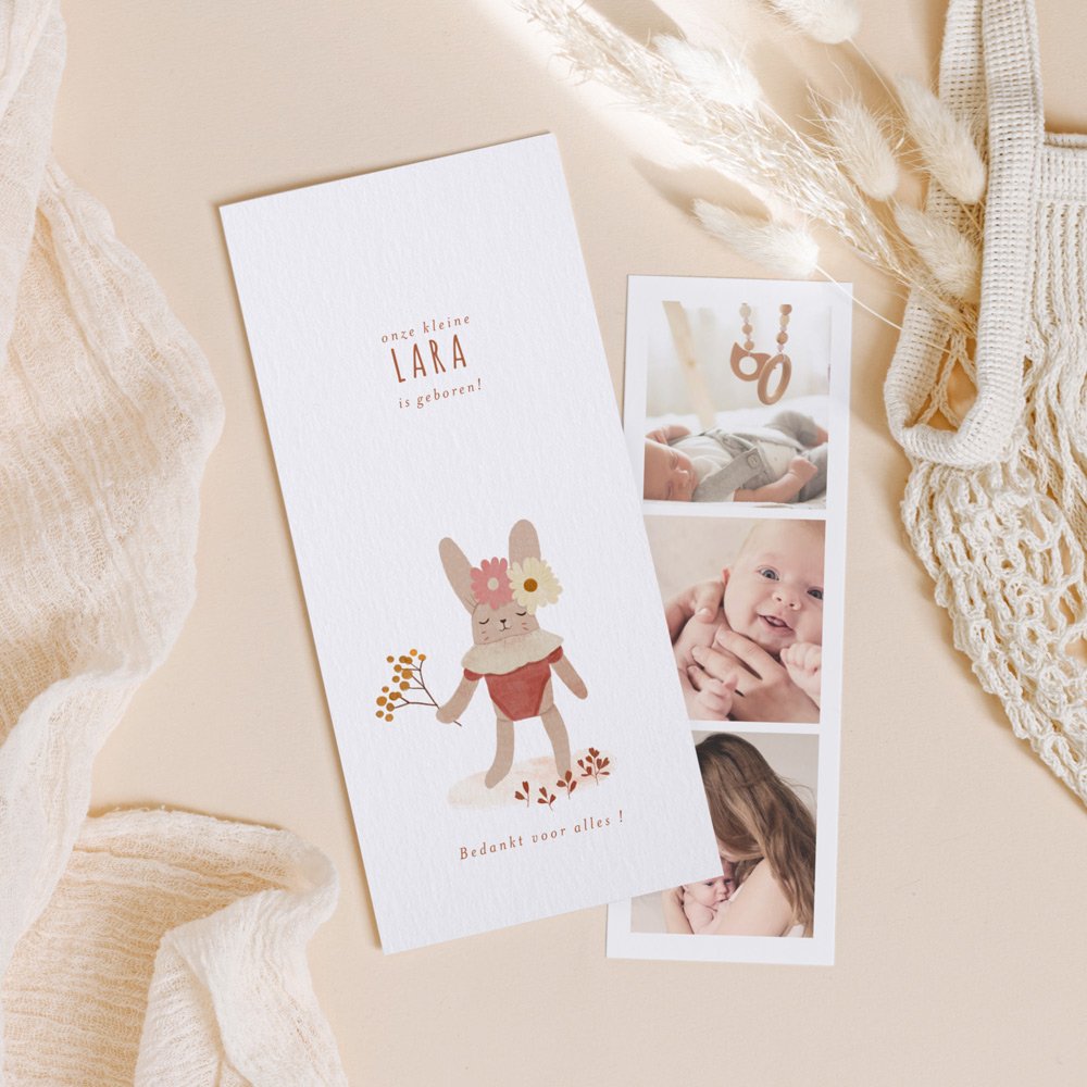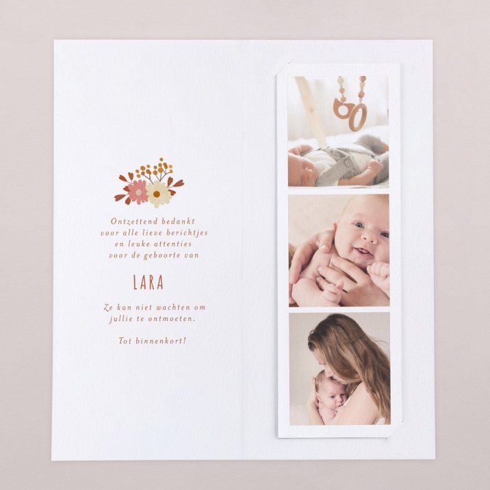 De fotostrip gaat in de binnenkant van de kaart en kan worden opgehangen als decoratie of als boekenlegger worden gebruikt.