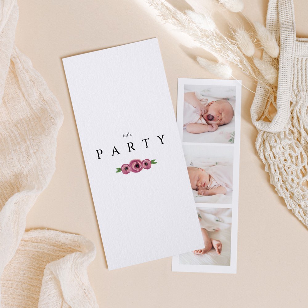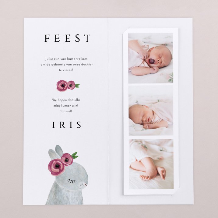 De fotostrip gaat in de binnenkant van de kaart en kan worden opgehangen als decoratie of als boekenlegger worden gebruikt.