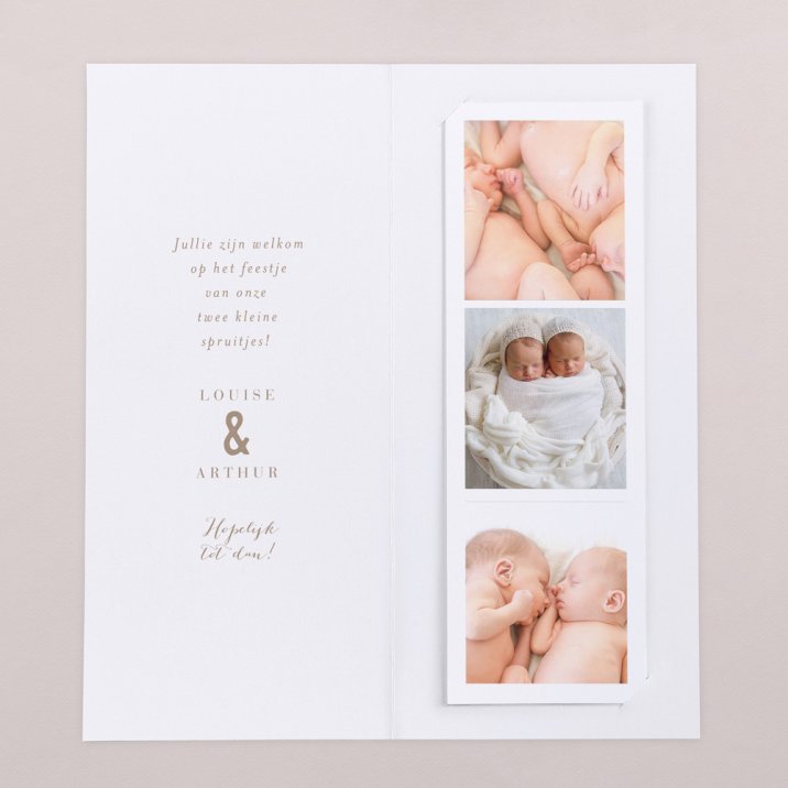 De fotostrip gaat in de binnenkant van de kaart en kan worden opgehangen als decoratie of als boekenlegger worden gebruikt.