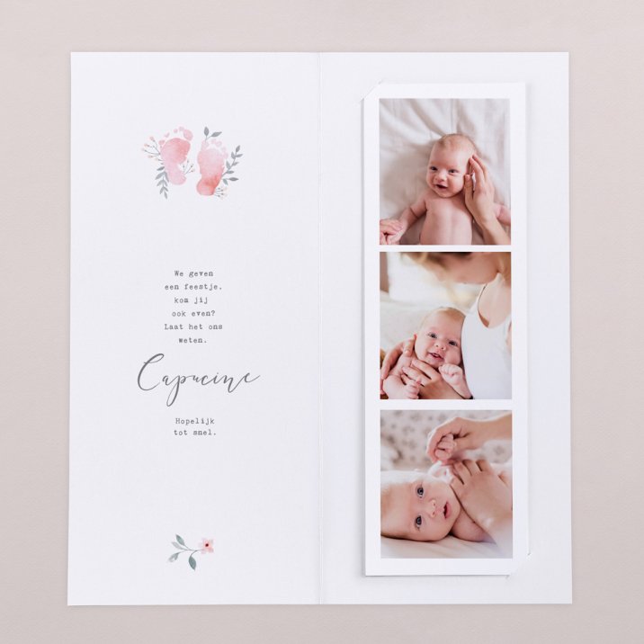 De fotostrip gaat in de binnenkant van de kaart en kan worden opgehangen als decoratie of als boekenlegger worden gebruikt.