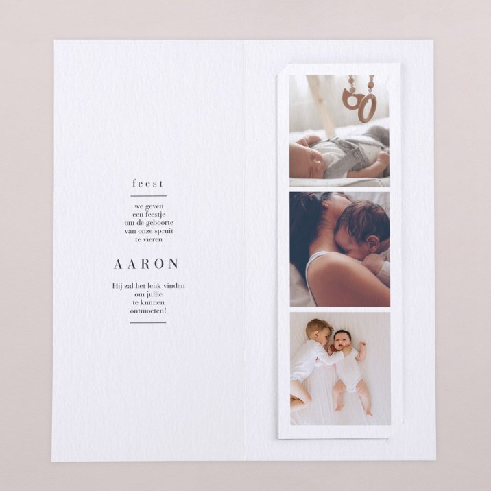 De fotostrip gaat in de binnenkant van de kaart en kan worden opgehangen als decoratie of als boekenlegger worden gebruikt.