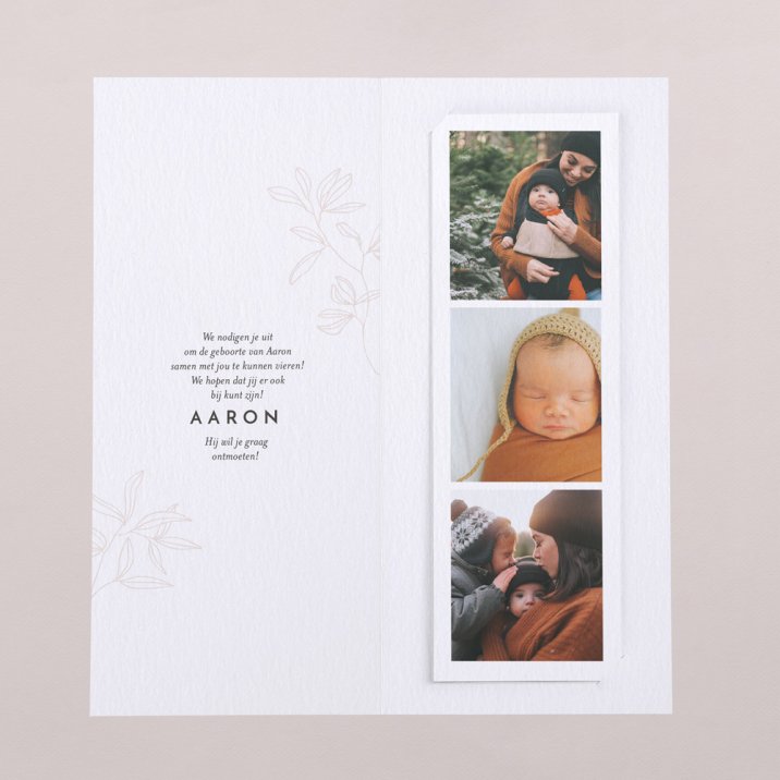 De fotostrip gaat in de binnenkant van de kaart en kan worden opgehangen als decoratie of als boekenlegger worden gebruikt.