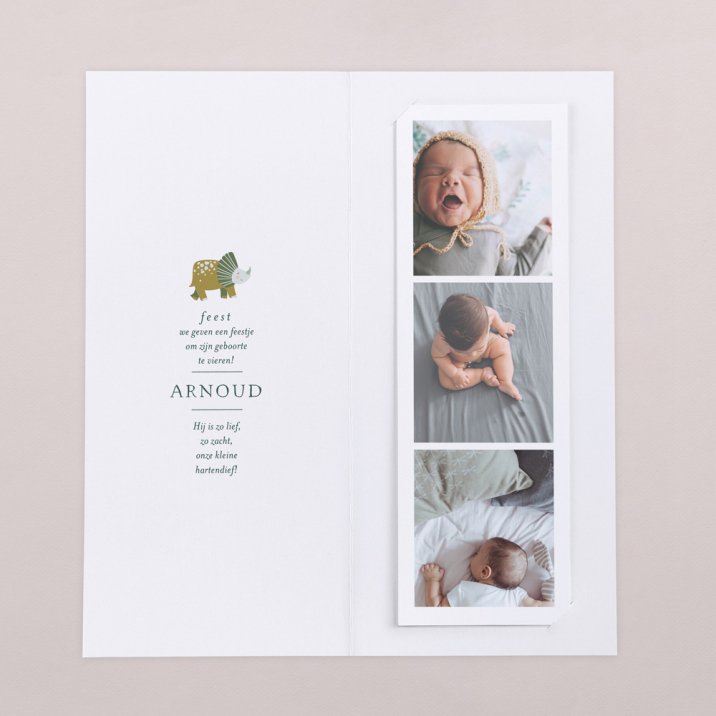 De fotostrip gaat in de binnenkant van de kaart en kan worden opgehangen als decoratie of als boekenlegger worden gebruikt.