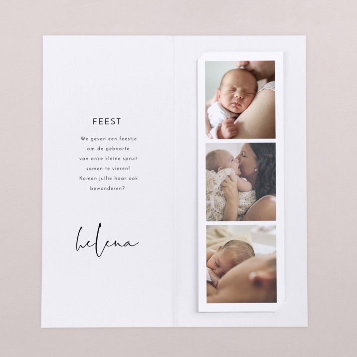 De fotostrip gaat in de binnenkant van de kaart en kan worden opgehangen als decoratie of als boekenlegger worden gebruikt.