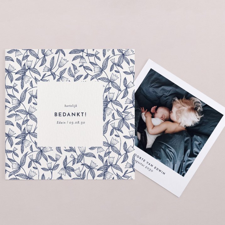 De polaroid gaat in de binnenkant van de kaart en kan daarna ergens apart worden tentoongesteld als herinnering aan de geboorte!