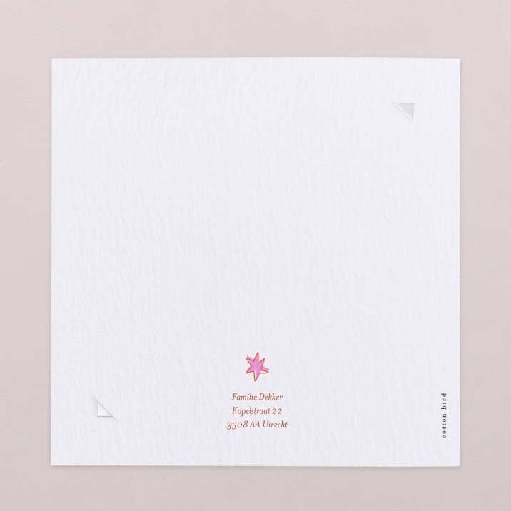 De polaroid gaat in de binnenkant van de kaart en kan daarna ergens apart worden tentoongesteld als herinnering aan de geboorte!