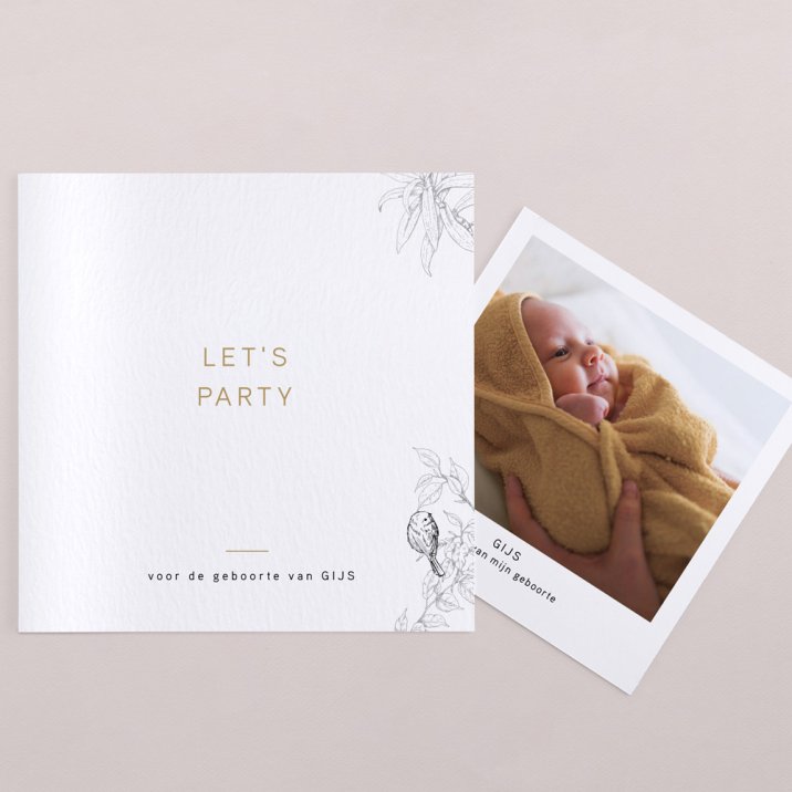 De polaroid gaat in de binnenkant van de kaart en kan daarna ergens apart worden tentoongesteld als herinnering aan de geboorte!