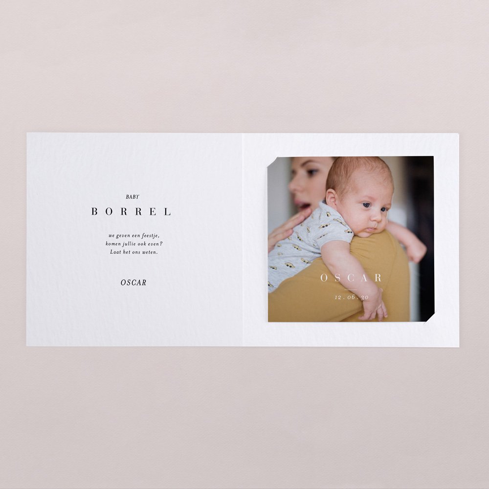 De polaroid gaat in de binnenkant van de kaart en kan daarna ergens apart worden tentoongesteld als herinnering aan de geboorte!