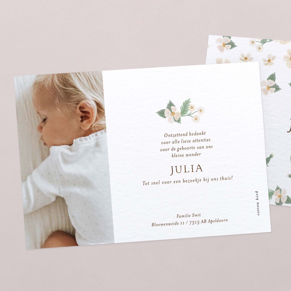 Dit kleine kaartje is als uitnodiging of bedankkaartje te verzenden. Dubbelzijdig en staand formaat met aan een kant je foto en aan de andere kant je tekst.
