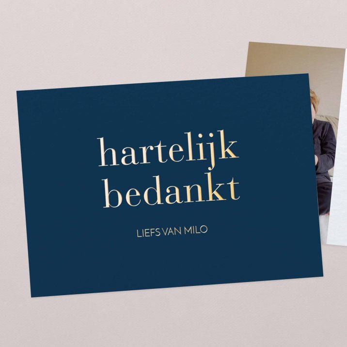 Dit kleine kaartje is als uitnodiging of bedankkaartje te verzenden. Dubbelzijdig en staand formaat met aan een kant je foto en aan de andere kant je tekst.