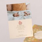 Dit kleine kaartje is als uitnodiging of bedankkaartje te verzenden. Dubbelzijdig en staand formaat met aan een kant je foto en aan de andere kant je tekst.