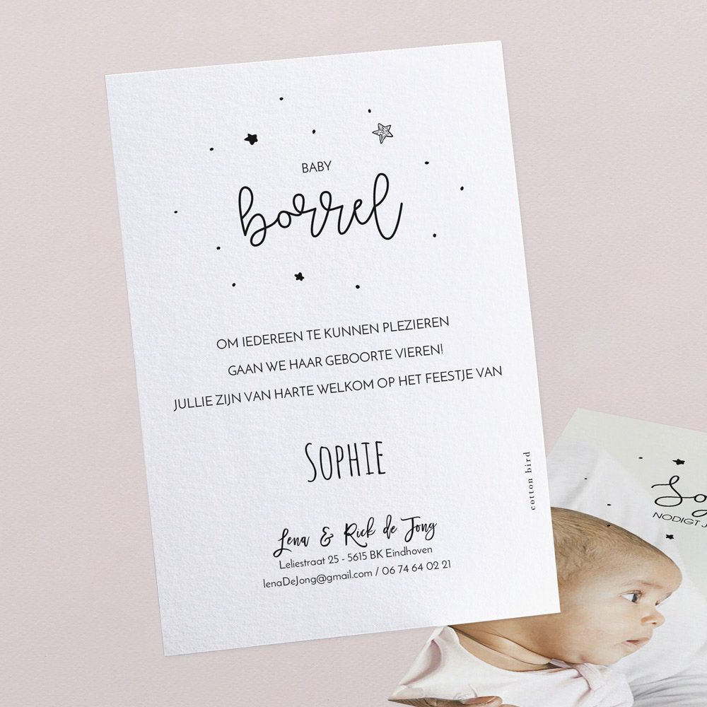Dit kleine kaartje is als uitnodiging of bedankkaartje te verzenden. Dubbelzijdig en staand formaat.