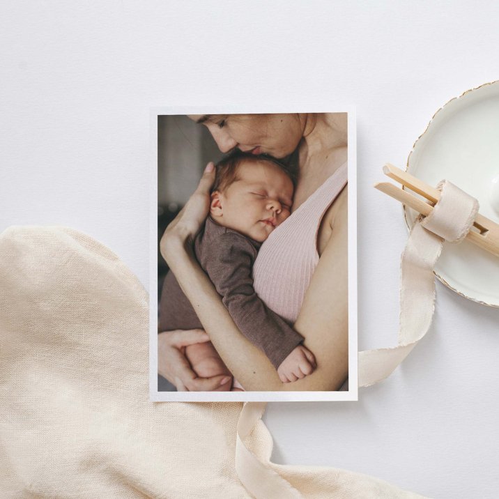 Dit kleine kaartje is als uitnodiging of bedankkaartje te verzenden. Dubbelzijdig en staand formaat met aan een kant je foto en aan de andere kant je tekst.
