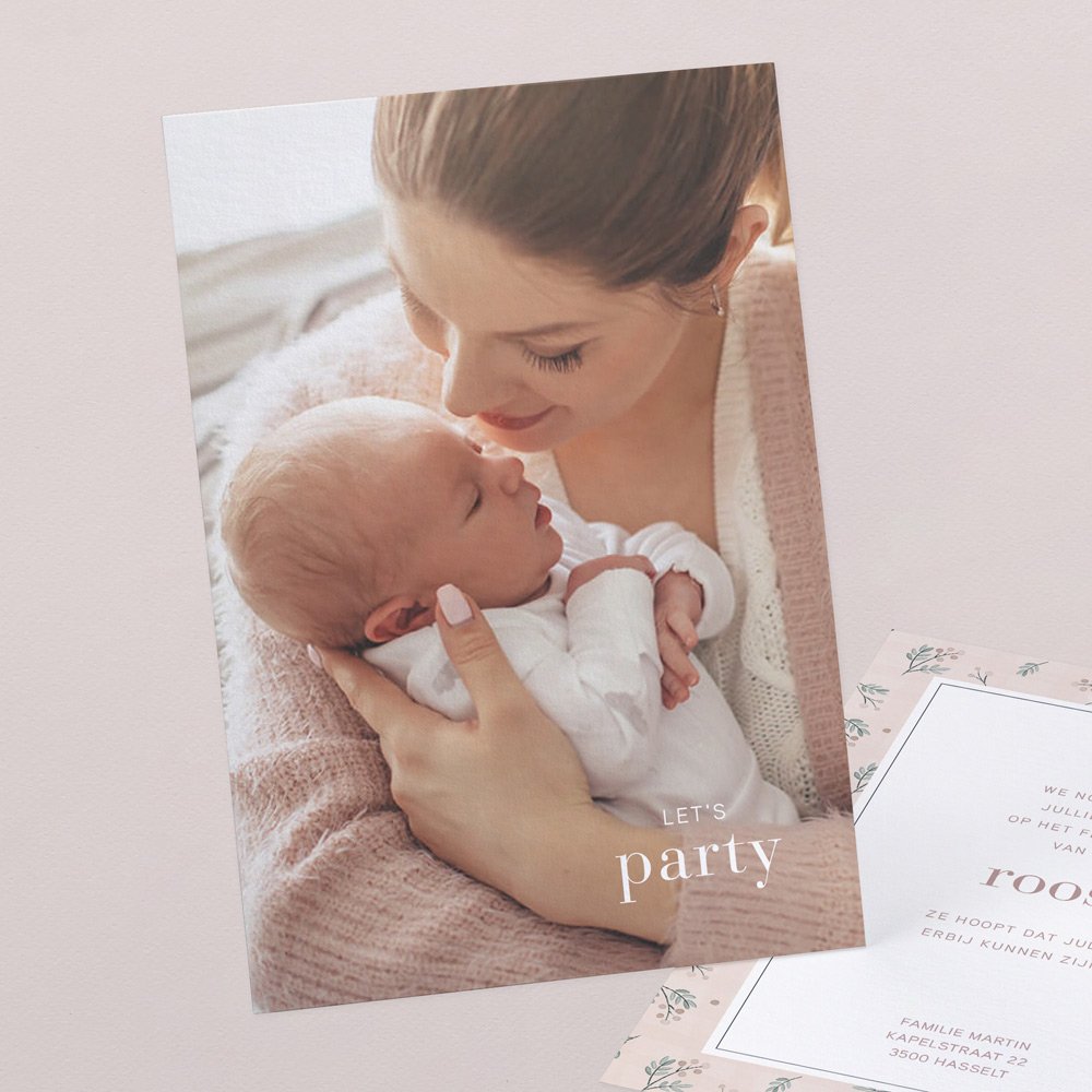 Dit kleine kaartje is als uitnodiging of bedankkaartje te verzenden. Dubbelzijdig en staand formaat met aan een kant je foto en aan de andere kant je tekst.