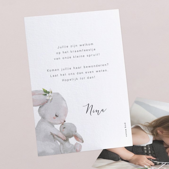 Dit kleine kaartje is als uitnodiging of bedankkaartje te verzenden. Dubbelzijdig en staand formaat.