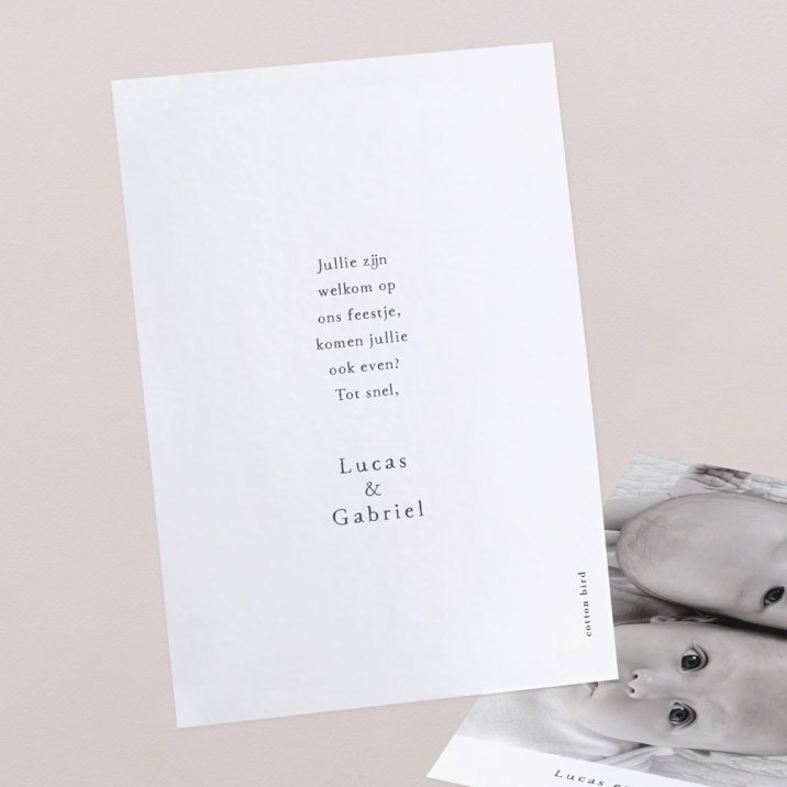 Dit kleine kaartje is als uitnodiging of bedankkaartje te verzenden. Dubbelzijdig en staand formaat.