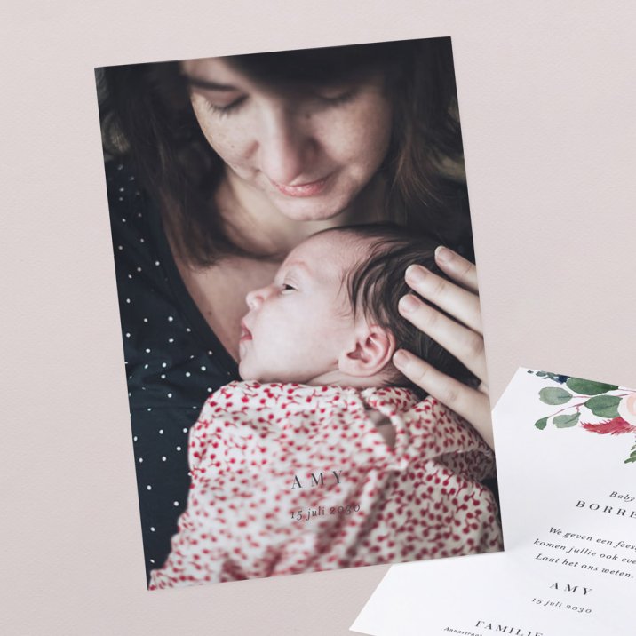 Dit kleine kaartje is als uitnodiging of bedankkaartje te verzenden. Dubbelzijdig en staand formaat.