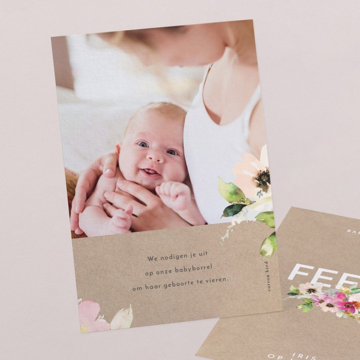 Dit kleine kaartje is als uitnodiging of bedankkaartje te verzenden. Dubbelzijdig en staand formaat.