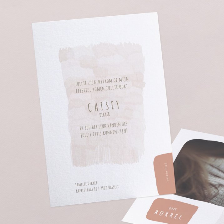 Dit kleine kaartje is als uitnodiging of bedankkaartje te verzenden. Dubbelzijdig en staand formaat met aan een kant je foto en aan de andere kant je tekst.