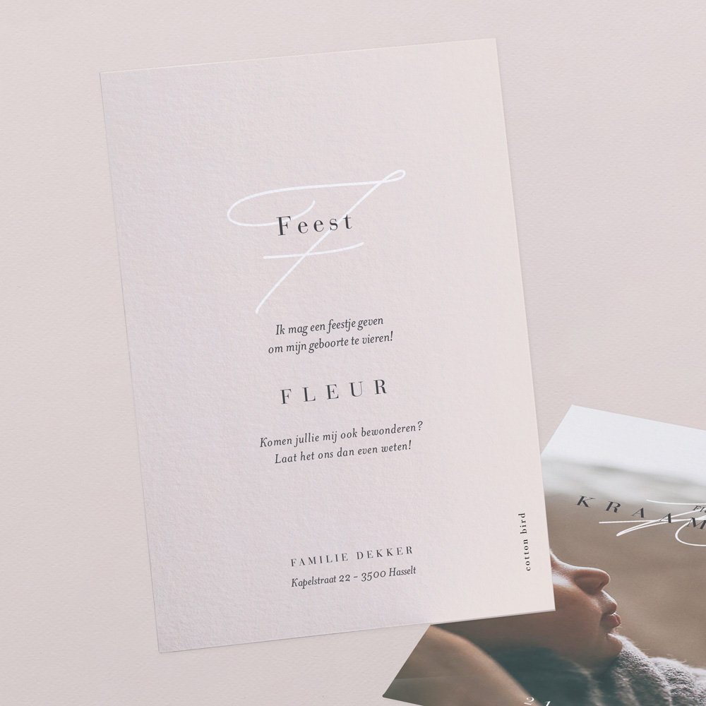 Dit kleine kaartje is als uitnodiging of bedankkaartje te verzenden. Dubbelzijdig en staand formaat met aan een kant je foto en aan de andere kant je tekst.