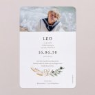 Een symbolische botanische krans van druivenblad, olijf en granen kondigen het vormsel van je kind aan. Deze communiekaart Oogst nodigen familie en vrienden uit voor het plechtige samenkomen rond de communie of lentefeest van je dochter of zoon.