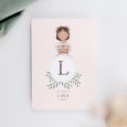 Op de communiekaart Rosary staat de eerste letter van je dochter centraal, omringd met een paar takjes olijf en een illustratie van een meisje klaar voor haar heilige of plechtige communie. Verras familie en vrienden met deze tedere uitnodiging voor het plechtige samenzijn rondom een communie of lentefeest.