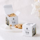 Een verrassingsdoosje als cadeautje voor je familie en vrienden, een mooie herinnering aan de communie of lentefeest van jullie kind. Een kleine kubus van 5,4 x 5,4 cm waarin verschillende soorten lekkernijen kunnen. Laat je creativiteit de vrije loop!