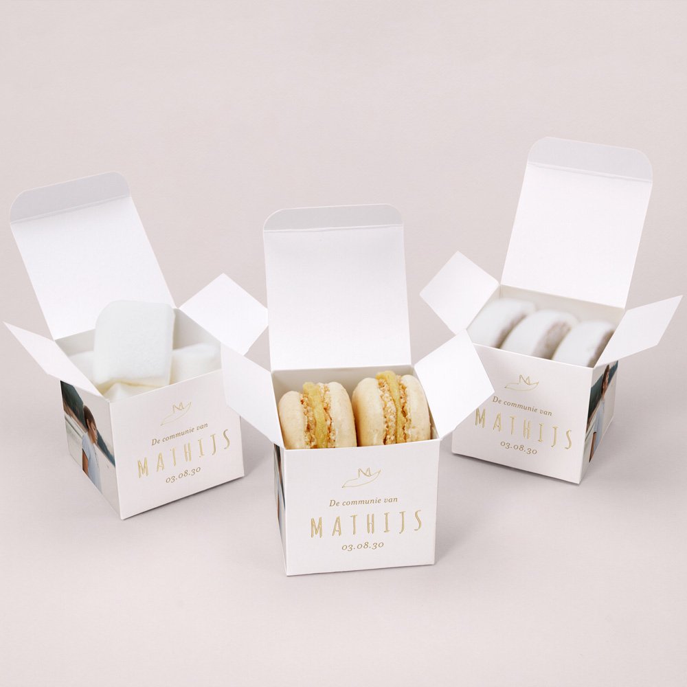 Een verrassingsdoosje als cadeautje voor je familie en vrienden, een mooie herinnering aan de communie of lentefeest van jullie kind. Een kleine kubus van 5,4 x 5,4 cm waarin verschillende soorten lekkernijen kunnen. Laat je creativiteit de vrije loop!