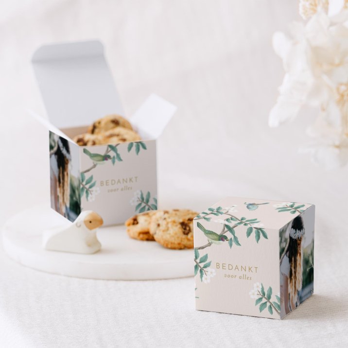 Een verrassingsdoosje als cadeautje voor je familie en vrienden, een mooie herinnering aan de communie of lentefeest van jullie kind. Een kleine kubus van 5,4 x 5,4 cm waarin verschillende soorten lekkernijen kunnen. Laat je creativiteit de vrije loop!