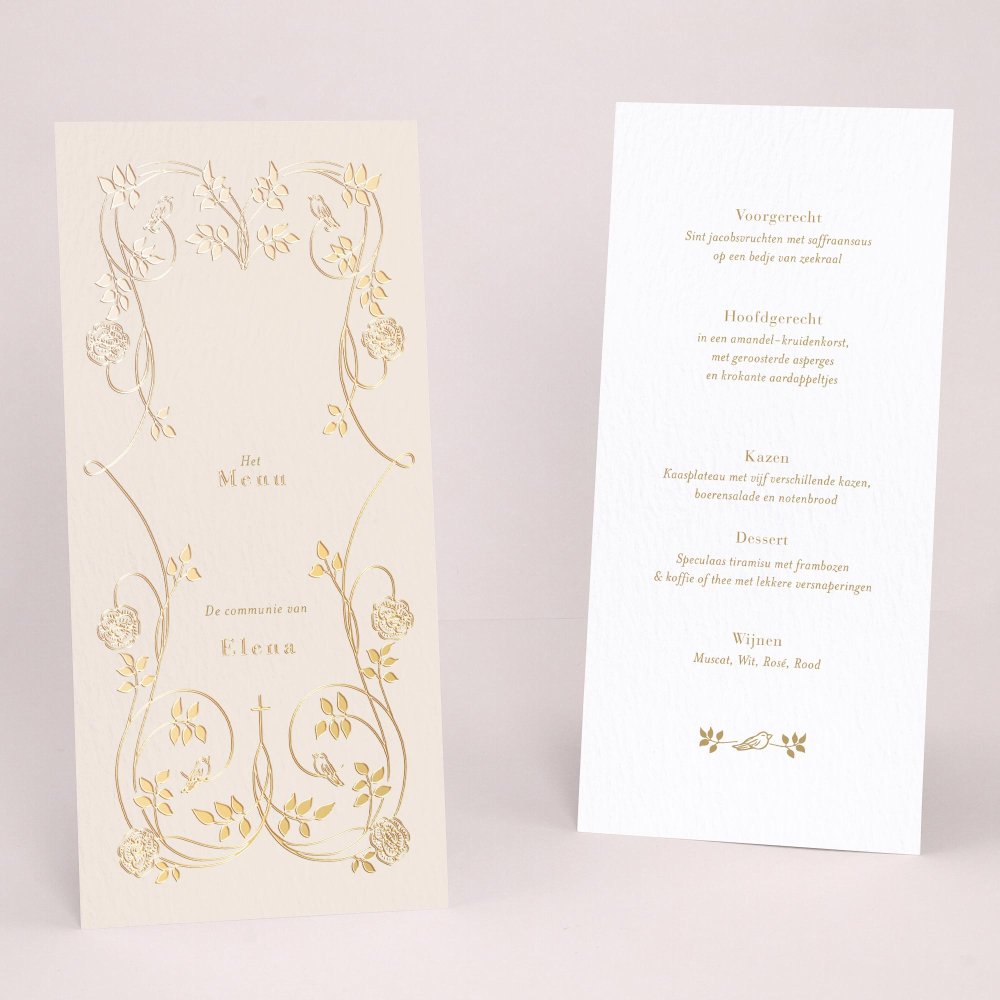 De menukaaren zijn natuurlijk in dezelfde stijl als de uitnodigingen van het communie of lentefeest.