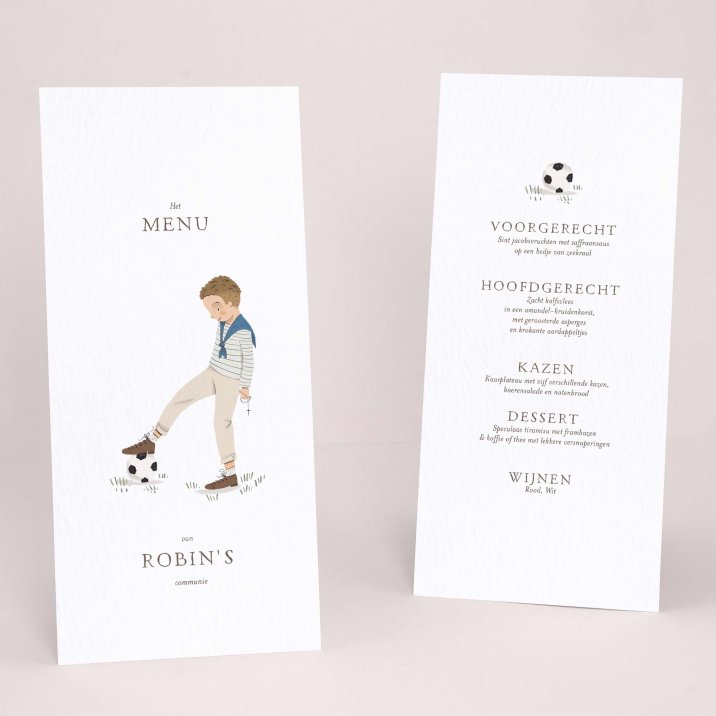 De menukaaren zijn natuurlijk in dezelfde stijl als de uitnodigingen van het communie of lentefeest.