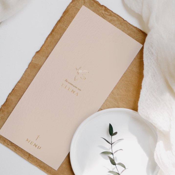 De menukaaren zijn natuurlijk in dezelfde stijl als de uitnodigingen van het communie of lentefeest.