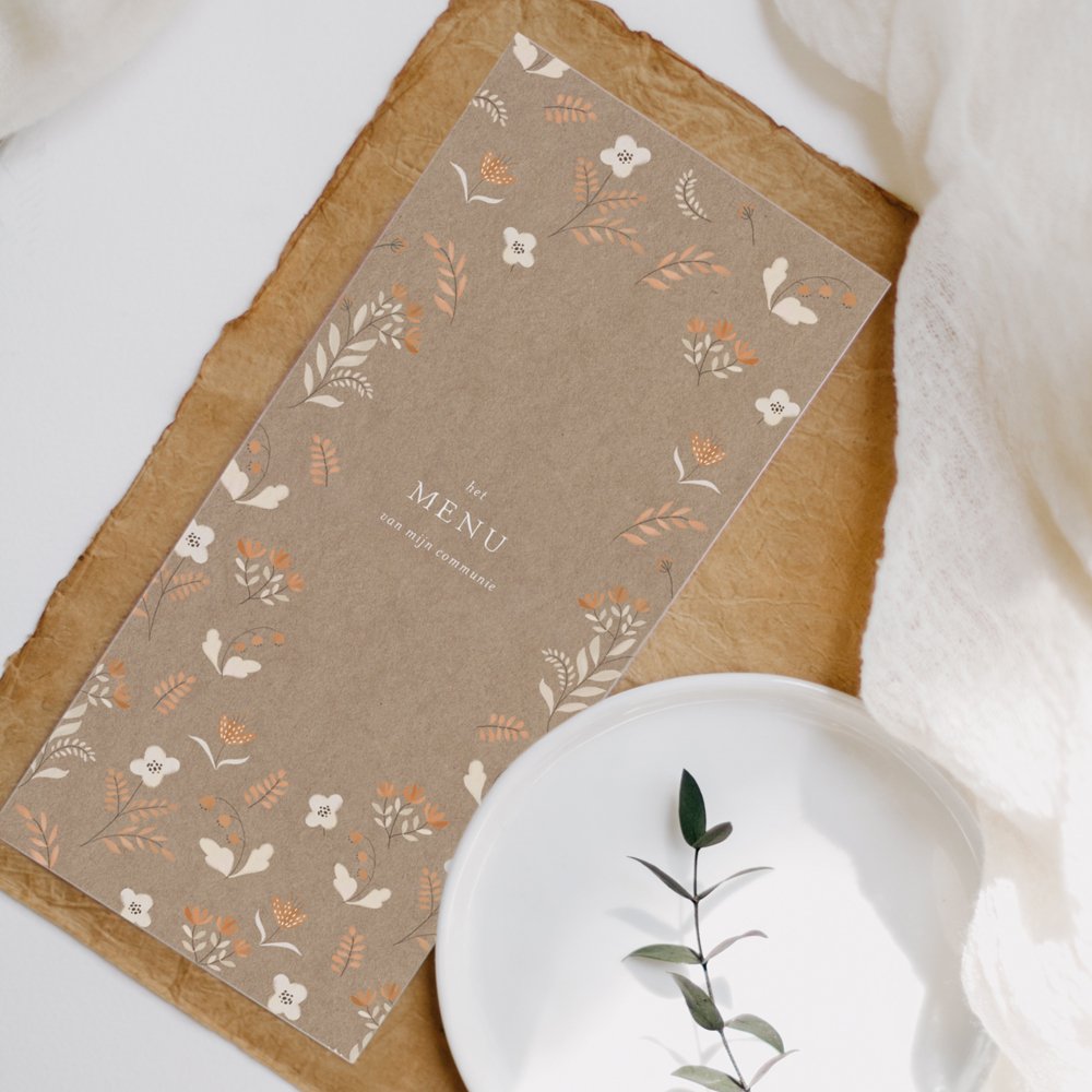 Wat staat er op het menu tijdens deze heugelijke dag van samenzijn? Laat je gasten watertanden door het aankondigen van het eetfestijn op mooie menukaarten.