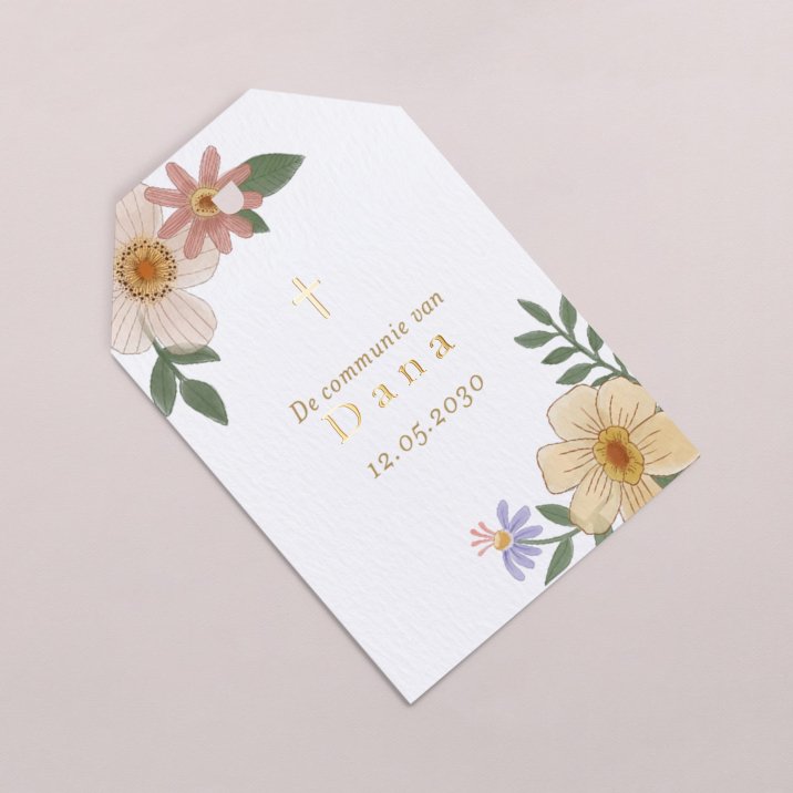 Deze cadeaulabels zijn ideaal voor de communiebedankjes. Dankzij de perforatie kan je er moeiteloos een lintje doorrijgen en bevestigen aan een snoepdoosje of ander klein cadeautje. (lintje optioneel naar keuze)